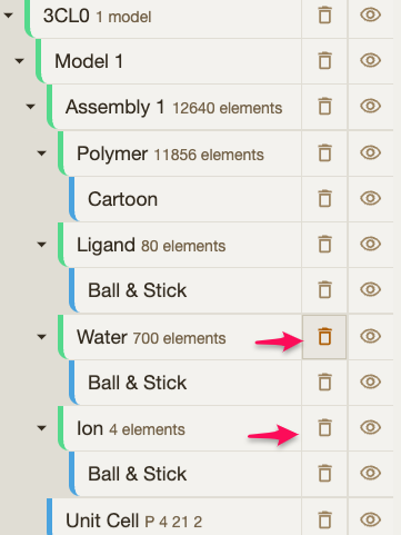 You can also remove water molecules and extra ions that will not be useful for us at this point. | ![]() |