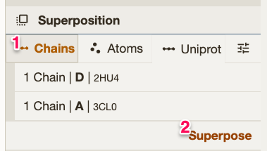3. Select one chain from each structure. 💡 Tip: Optionally, you can remove all the unwanted chains but one using the |